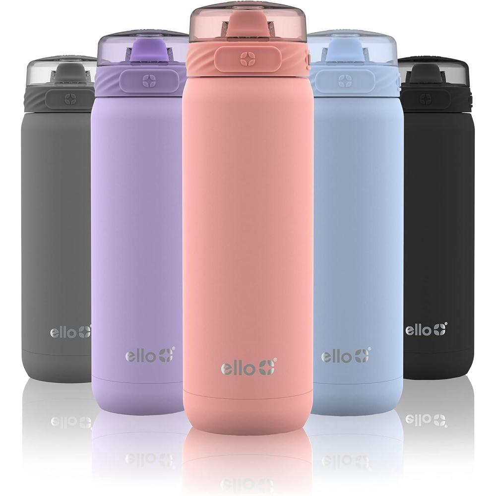 imageEllo Cooper 22oz Stainless Steel Water Bottle with Straw and Carry Handle Double Walled and Vacuum Insulated Metal Leak Proof Locking Lid with Soft Silicone Spout Reusable BPA Free BlackCashmere Pink