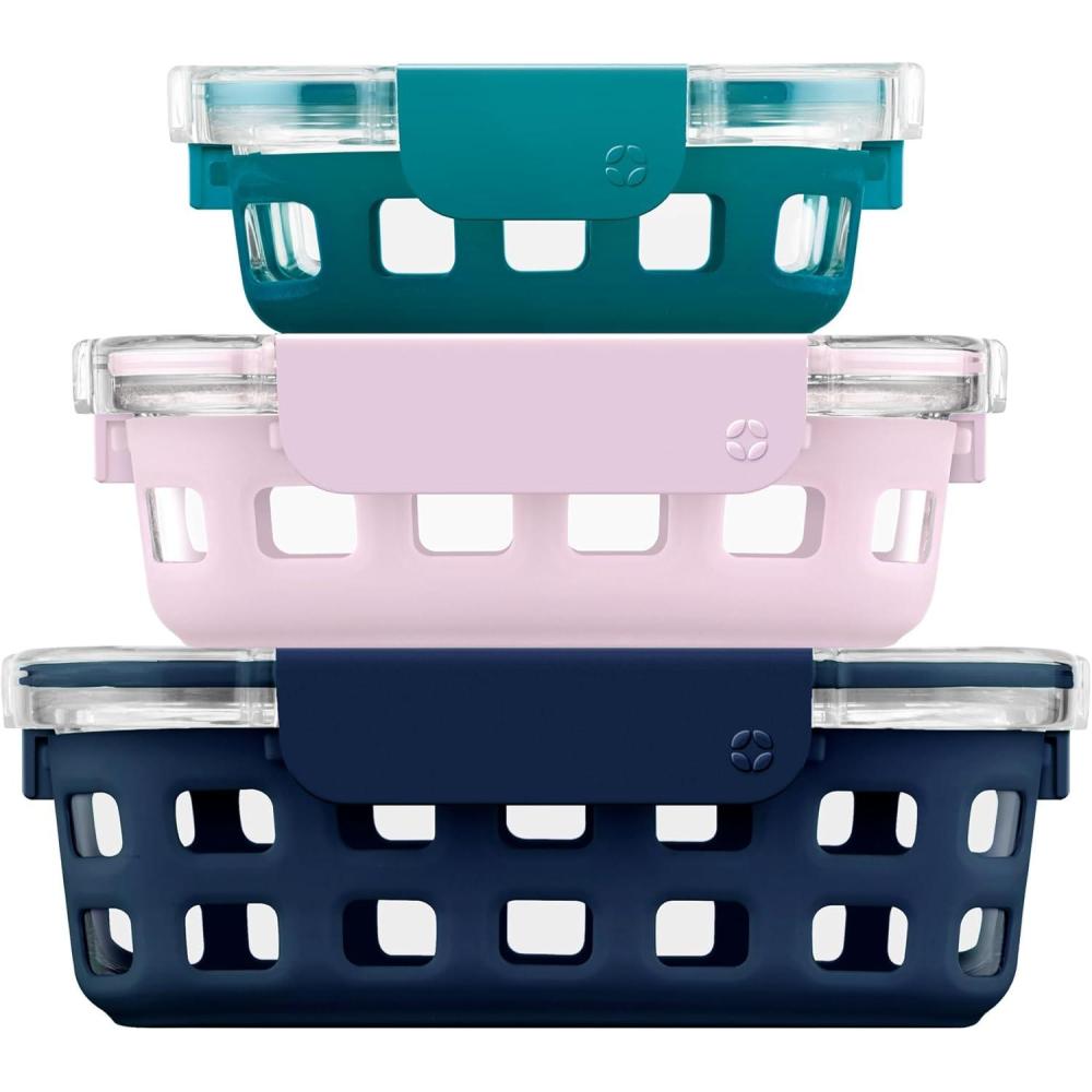 Ello Duraglass Mixed Meal Prep Sets Leak-Proof Glass Food Storage Containers with Silicone Sleeves and Airtight BPA-Free Lids, Dishwasher, Microwave, and Freezer Safe(Spring Mixed Set)