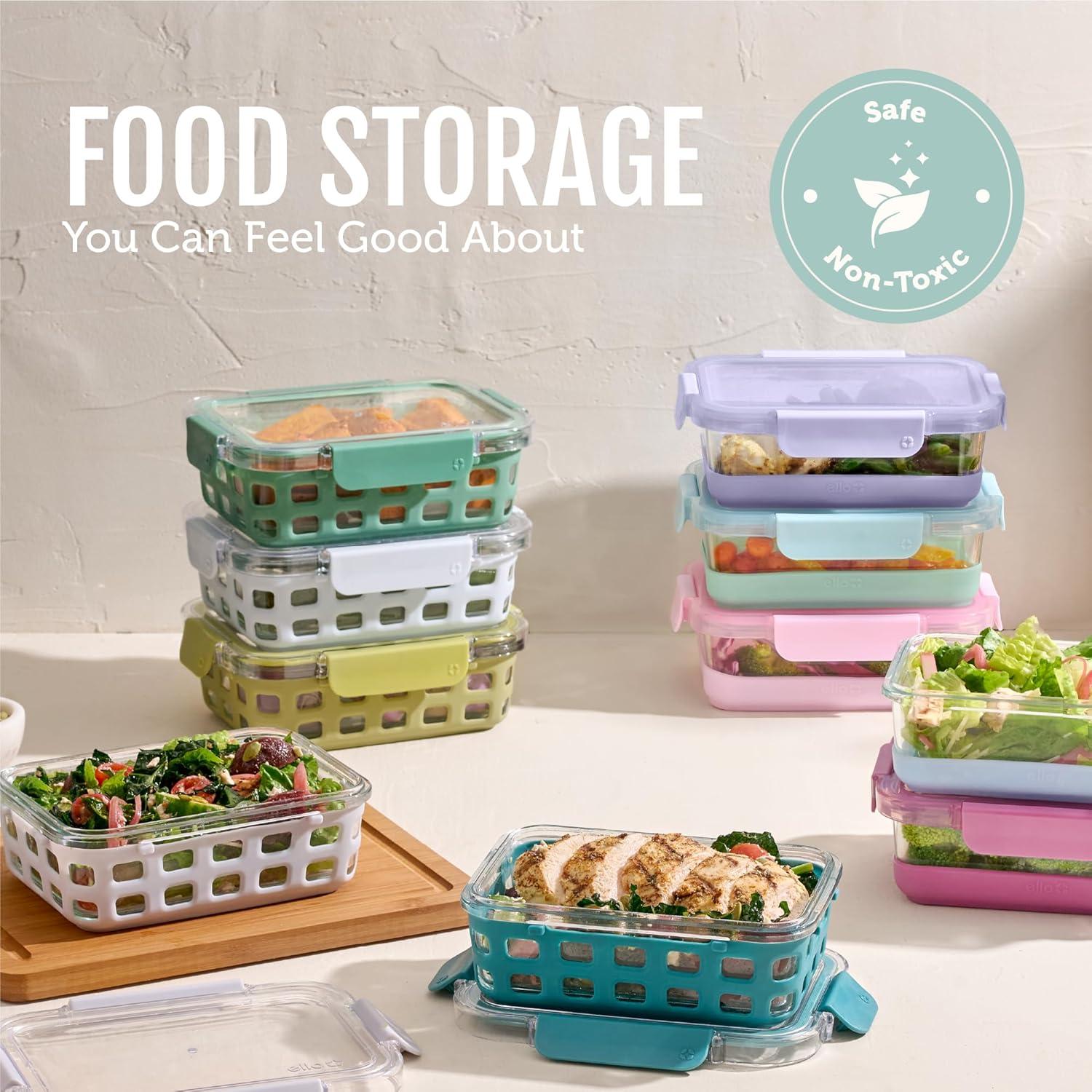 Make meal prep fun! The Ello DuraGlass 10-piece Meal Prep Set includes (5) 3.4 cup glass containers each with leak-proof lids and extra thick silicone protection boot to protect from chips and breaks. Clear, BPA-Free plastic lids let you see contents inside and include air tight snaps that won't leak and keep food fresher longer. Containers are dishwasher safe, and microwave and oven safe without the lid and no need to remove the silicone sleeve! Duraglass is non-porous, so it won't absorb food odors, flavors, or stains. Do not place hot containers on wet or cold surfaces.