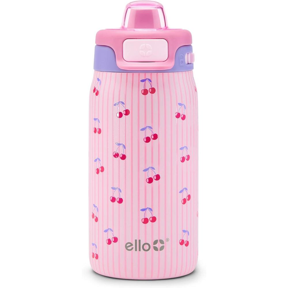 Ello Kids Pop & Fill 12oz Toddler Water Bottle with Quick Fill Lid, Double-Wall Vacuum Insulated Stainless Steel, Leak Proof, BPA Free, Sip & Chug, For School, Lunchboxes, Preppy Cherries(Preppy Cherries)