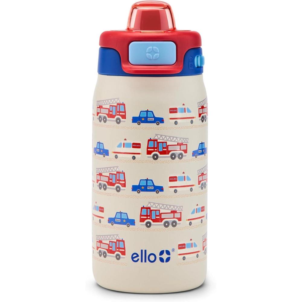 Say hello to the Ello Pop & Fill water bottle: the fun, easy way to keep your little one happy and hydrated. With a 12oz capacity and double-wall stainless steel insulation, it keeps water ice-cold for up to 16 hours. The Quick Fill™ lid flips open wide for refills without twisting or unscrewing, so you can fill it fast and get back to playtime fun. Once closed, the leak-proof seal and locking lid help keep messes out from diaper bags to playroom floors. Whether sipping from the soft silicone straw or drinking from the wide opening, kiddos can hydrate with ease. The built-in carry loop makes it easy for grown-ups to grab and little hands to hold, and the slim shape fits in most stroller and car seat cup holders. Made from BPA-free, dishwasher-safe materials, this durable bottle is built for the bumps, drops, and busy days of life. With fun colors and pattern-packed designs to match their personality, the Pop & Fill is the perfect first water bottle for your growing sidekick.