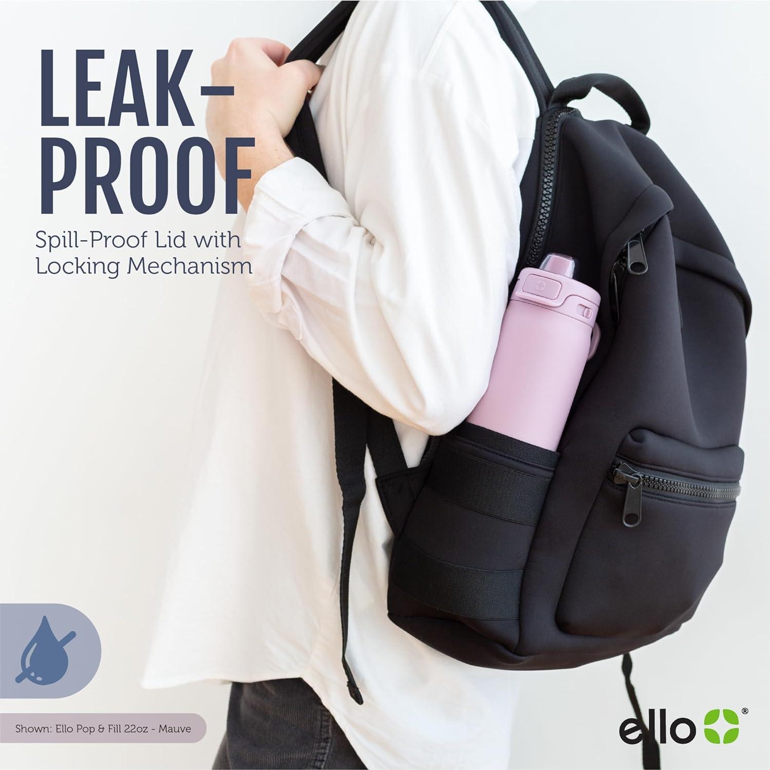 Elevate your hydration experience with the Ello Pop & Fill insulated stainless steel water bottle featuring a convenient push-button lid and a secure locking mechanism. Premium double wall stainless steel construction provides unmatched durability while keeping drinks refreshingly cold up to 24 hours. The innovative leak-proof Quick Fill lid pops open for easy refills, making inconvenient top-offs a thing of the past. Equipped with a silicone spout and internal straw, Pop & Fill gives you the option to sip easy or chug effortlessly, catering to your every hydration need. Say goodbye to the days of handwashing your water bottles as all parts are top rack dishwasher safe. Take your hydration to the next level with BPA-free, versatile reusable water bottle that adapts seamlessly to any on-the-go routine. Take a step towards an eco-friendlier hydration journey with Ello Pop & Fill- your stylish and reliable companion for all your adventures. Not to be used with hot liquids.