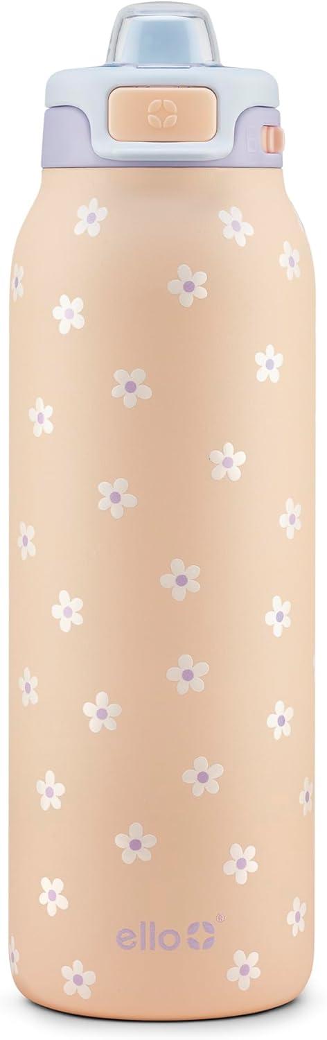 Ello Pop & Fill Stainless Steel Water Bottle with Quick Fill Technology, Double Walled Vacuum Insulated Metal, Leak Proof Locking Lid, Sip & Chug, BPA Free, Holiday Gift for Him Her, 22oz, 32oz, 40oz(Gloss Daisies)