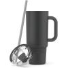The Ello Port 40oz vacuum insulated stainless steel tumbler celebrates the convenience of large capacity hydration with on-the-go features. Vacuum insulated stainless steel keeps cold all day and is made for all-day hydration with fewer refills! Carry the tumbler from the built-in carry loop or integrated side handle and drink with or without the straw. The narrow base design allows the tumbler to fit into most car cup holders making it perfect for on-the-go. The leak-proof lid screws on to fit accomodate both left-handed and right-handed users. Port's large capacity and easy use on the go makes it perfect for work, school, workouts, home, and everything in between!