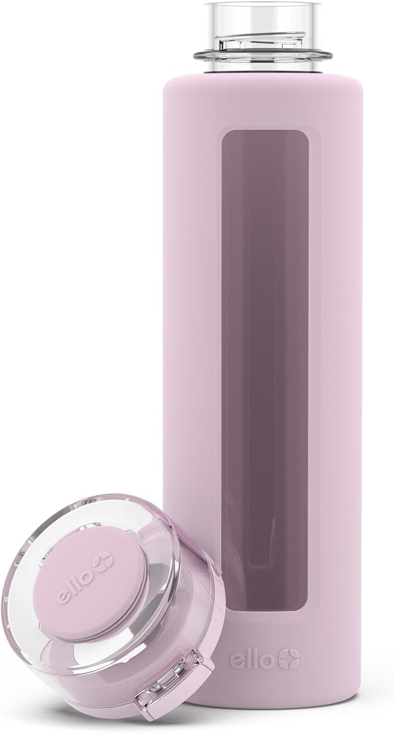 The Ello Syndicate Glass Water Bottle is made of clean-tasting glass that won't leach, stain or smell. Say goodbye to plastic and enjoy the pure pleasure of drinking directly from glass. Syndicate's convenient one-touch flip lid is designed to be leakproof and easy to drink from. The bottle is further enhanced by an FDA food-grade silicone sleeve, ensuring a secure, slip-free grip while safeguarding the glass. With its dishwasher-safe feature, the Syndicate reusable glass water bottle is your ideal companion for on-the-go hydration, whether it's during school, work, or a gym session.