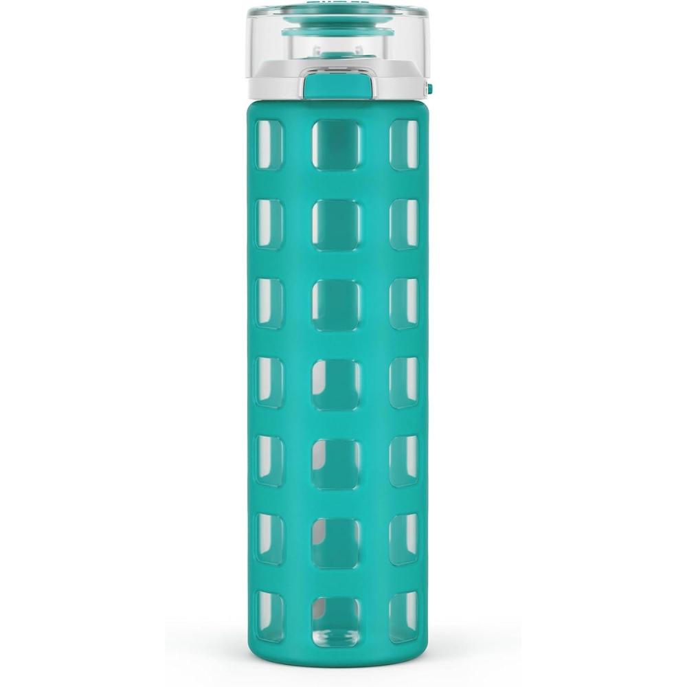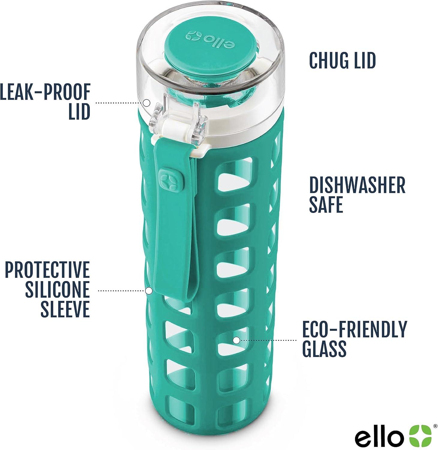 imageEllo Syndicate 20oz Reusable Glass Water Bottle with OneTouch Leak Proof Flip Lid Protective NonSlip Silicone Sleeve Carry Loop for Coffee Tea and Water BPAfree Dishwasher Safe AlligatorSage
